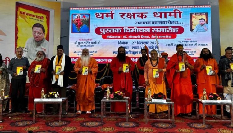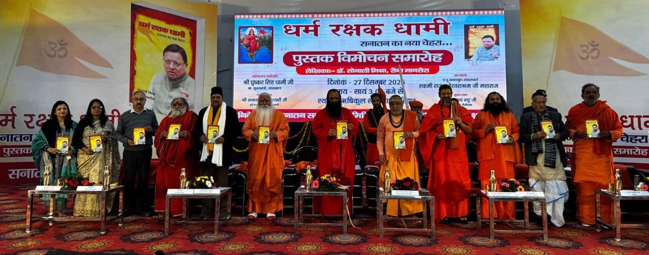 राष्ट्र संचालन के लिए धर्म नीति का होना आवश्यक है, धर्म की रक्षा होगी तभी राष्ट्र सुरक्षित रहेगा। राष्ट्र-राज्य की सुरक्षा को चुनौती दे रही जिहादी मानसिकता को समाप्त करने में जिस तरह मुख्यमंत्री पुष्कर सिंह धामी ने ताबड़ तोड़ कार्यवाही की है, उसे डॉ. सोनाली मिश्रा व रीना मानसेरा ने लिपिबद्ध कर सहरानीय कार्य किया है। यह उद्गगार सनातन सद्भावना समिति द्वारा आयोजित कार्यक्रम में जगतगुरु शंकराचार्य स्वामी राजराजेश्वराश्रम महाराज ने धर्म रक्षक धामी पुस्तक के विमोचन अवसर पर ऋषिकुल सभागार में दिए।