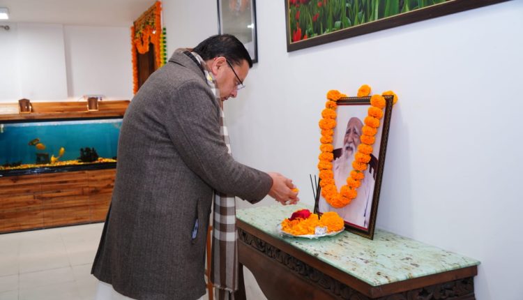 मुख्यमंत्री पुष्कर सिंह धामी ने पर्यावरणविद, चिपको आंदोलन के प्रणेता तथा पद्म विभूषण से सम्मानित सुन्दरलाल बहुगुणा की जयंती पर उनके चित्र पर श्रद्धा सुमन अर्पित किए।