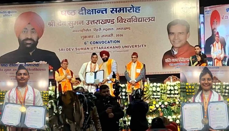 देहरादून- ।- पेसलवीड कॉलेज ऑफ इंफॉर्मेशन टैक्नोलॉजी के दो मेधावी छात्रों को श्रीदेव सुमन उत्तराखण्ड विश्वविद्यालय के षष्टम दीक्षान्त समारोह में उत्तराखण्ड के राज्यपाल लेफ्टीनेंट जनरल गुरमीत सिंह द्वारा दिनांक 23 जनवरी 2026 को पं० ललित मोहन शर्मा, विश्वविद्यालय परिसर, ऋषिकेश में दीक्षान्त समारोह में स्वर्ण पदक एवं उपाधि से सम्मानित किया गया।