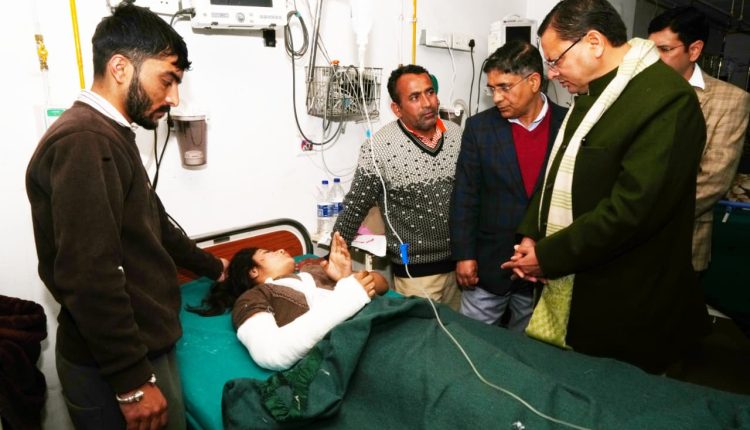 क्वानू-मीनस मोटर मार्ग दुर्घटना में घायल यात्रियों का हाल पूछने दून अस्पताल पहुंचे मुख्यमंत्री धामी