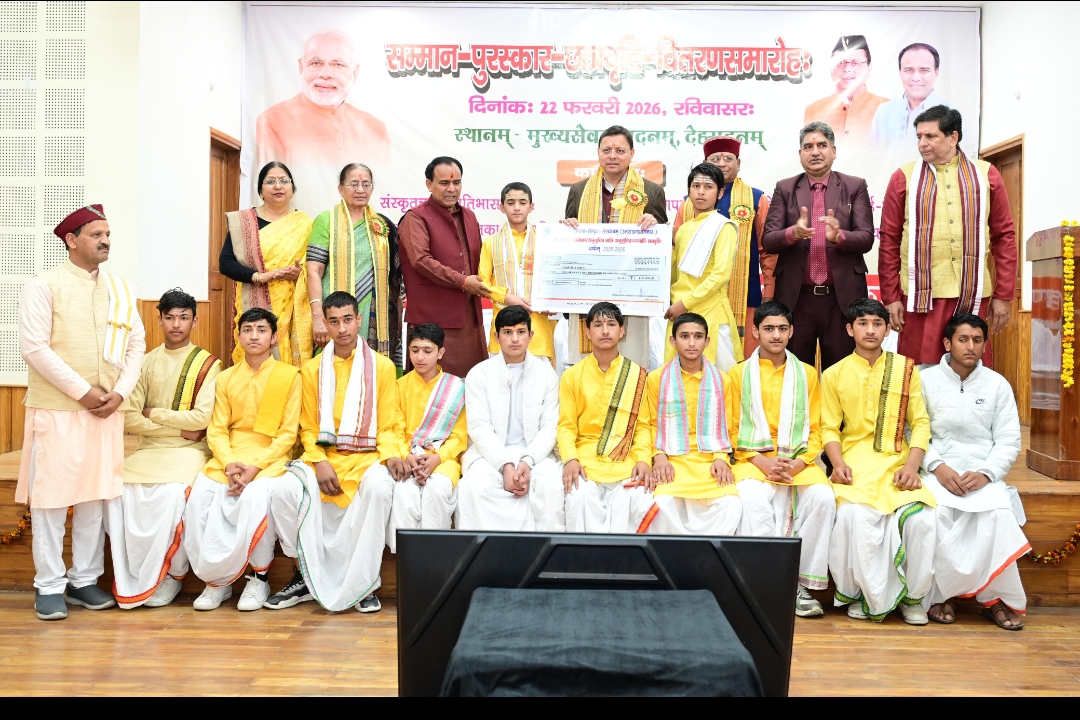 मुख्यमंत्री पुष्कर सिंह धामी ने रविवार को मुख्यमंत्री कैम्प कार्यालय स्थित मुख्य सेवक सदन में संस्कृत छात्र प्रतिभा सम्मान कार्यक्रम में भाग लिया।