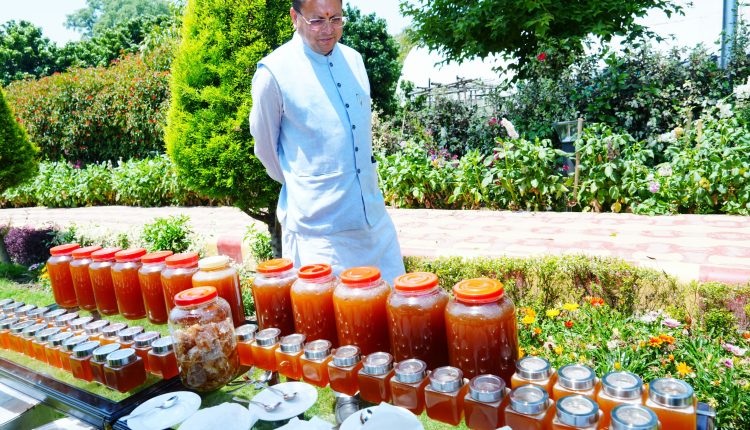 मुख्यमंत्री पुष्कर सिंह धामी ने शनिवार को मुख्यमंत्री आवास परिसर में शहद निकालने की प्रक्रिया का अवलोकन किया