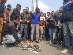 वन आरक्षी भर्ती को लेकर बेरोजगारों ने फूंकी डिग्री की प्रतियां