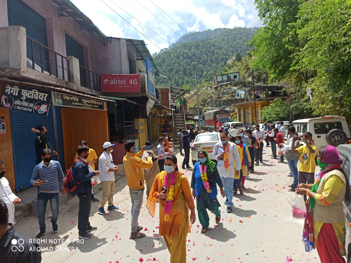 थराली विधानसभा के नारायणबगड़ विकासखण्ड में भी बीजेपी की मंडल कार्यकारिणी ने थराली विधायक मुन्नी देवी शाह के नेतृत्व में सड़क पर खड़े होकर पुलिसकर्मियों, स्वास्थ्यकर्मियों, बैंककर्मियों के सम्मान में पुष्प वर्षा की और इन कोरोना वारियर्स के उत्साहवर्धन में ताली बजायी। ,इस दौरान थराली विधायक मुन्नी देवी शाह के साथ कोरोना वारियर्स के सम्मान में नारायणबगड़ ब्लॉक प्रमुख यशपाल नेगी, मंडल अध्यक्ष महेशानंद चंदोला ,और कमलेश सती ने भी पुष्प वर्षा और ताली बजाकर इन योद्धाओं का उत्साह बढ़ाया ,इसके साथ ही थराली विधायक मुन्नी देवी शाह ने सभी कोरोना वरियर्स का धन्यवाद करते हुए कहा कि पुलिस,स्वास्थ्य,और सफाईकर्मी बड़ी मुस्तैदी से अपना फर्ज निभा रहे हैं। और जनता भी कोरोना से इस लड़ाई के लिए घरों में सुरक्षित रहकर सरकार का भरपूर सहयोग कर रही है। उन्होंने कहा कि कोरोना वायरस के संक्रमण से अभी तक उनकी विधानसभा के साथ ही पूरा जिला अछूता है। जिससे कहा जा सकता है कि इस जिले में सभी नागरिक लॉकडाउन का पालन कर रहे हैं और कोरोना वरियर्स अपनी ड्यूटी बखूबी निभा रहे हैं। ,उन्होंने कहा कि जल्द ही उत्तराखंड राज्य सहित पूरा देश कोरोना से जंग जीत लेगा बस इसके लिए जरूरी है कि सभी लोग इसी तरह लॉकडाउन का पालन करे।