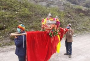डीएम डॉ. आशीष चैहान और पुलिस अधीक्षक पंकज भट्ट ने बताया कि चार धाम यात्रा अभी प्रतिबंधित है। रविवार को भी जब डोली निकाली गई तो दो लोग ही डोली लेकर चले। उनके साथ दो से तीन और लोग सोशल डिस्टेंस बनाकर धाम के लिए रवाना हुए थे।