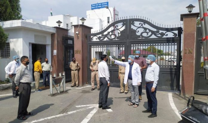 विधानसभा भवन परिसर में कार्मिकों की थर्मल स्कैनिंग से की गई स्वास्थ्य जांच