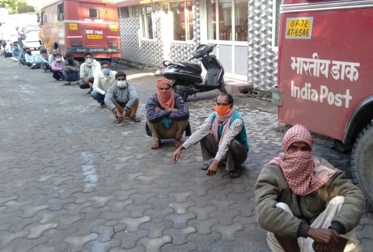 पोस्ट ऑफिस के बाहर तड़के से लाइन में लग रहे गरीब मजदूर