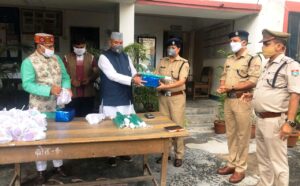 देहरादून। कोरोना के खिलाफ जंग में अग्रिम पंक्ति पर मोर्चा संभालने वाले पुलिसकर्मियों को मसूरी विधायक गणेश जोशी ने सम्मानित किया। उन्होनें कहा कि लाकडाउन के दौरान पुलिसकर्मियों ने अभूतपूर्व कार्य किया है। उन्होनें कहा कि प्रधानमंत्री नरेन्द्र मोदी के आहवान पर सभी देशवासी कोरोना से लड़ाई लड़ रहे हैं। कोरोना योद्धाओं के उत्साहवर्धन के लिए उन्हें सम्मान दिया जाना अति आवश्यक है। शुक्रवार को देहरादून के नगर कोतवाली में तैनात 126 पुरुष एवं महिला पुलिसकर्मियों को विधायक गणेश जोशी ने च्वयनप्रास, सैनिटाइजर, छाता एवं साबुन प्रदान कर सम्मानित किया। उन्होनें कहा कि कोविड-19 के खिलाफ इस महायुद्ध में पुलिस लगातार फ्रंटलाइन पर आकर कार्य कर रही है। संकट की इस घड़ी में पुलिस की जितनी सराहना की जाए, वह कम होगी। राशन वितरण से लेकर दवाई वितरण, सब्जी वितरण से लेकर भोजन बांटने तक का काम पुलिस ने सफलतापूर्वक किया गया। प्रवासियों को बसों के माध्यम से अपने गन्तव्य तक पहुॅचाने के लिए तथा दूसरे प्रदेशों में जाकर वहां से उत्तराखण्ड के लोगों को घर लाने का साहसिक कार्य भी पुलिस ने किया। उन्होनें राज्य के प्रत्येक पुलिसकर्मी को अपनी ओर से उनके उज्जवल भविष्य की कामना की। इस अवसर पर राजपुर विधायक खजानदास, पुलिस अधीक्षक (शहर) श्वेता चैबे, क्षेत्राधिकारी शेखर सुयाल, कोतवाल एसएस नेगी, अनुज रोहिला, विशाल आदि उपस्थित रहे।