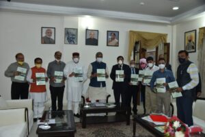 इस अवसर पर प्रमुख सचिव श्री आनन्द वर्द्धन, सचिव श्री आर.के. सुधांशु, श्री आर.मीनाक्षी सुन्दरम, श्री हरवंश चुघ, विशेष सचिव मुख्यमंत्री डॉ पराग मधुकर धकाते, अपर सचिव मुख्यमंत्री श्री नीरज खैरवाल, नाबार्ड के मुख्य महाप्रबन्धक डॉ. ज्ञानेन्द्र मणि आदि उपस्थित थे।