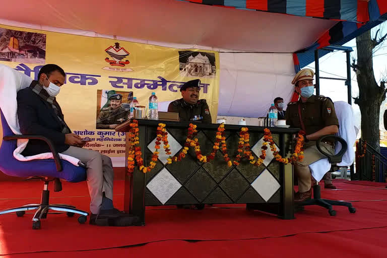 उत्तरकाशी। सोमवार को पुलिस महानिदेशक अशोक कुमार उत्तरकाशी दौरे पर पहुंचे। जहां उन्होंने उत्तरकाशी पुलिस लाइन में पुलिस अधिकारियों और जवानों से मुलाकात की। इस दौरान उन्होंने कहा कि आज(सोमवार) से प्रदेश के सभी 9 पर्वतीय जिलों के लिए आदेश किया गया है कि इन सभी जिलों में प्रत्येक थाने के अंतर्गत एक गांव को गोद लिया जाएगा। जिससे कि पुलिसकर्मी ग्रामीणों और प्रशासन सहित अन्य विभागों के बीच एक सेतु का काम करेंगे। डीजीपी अशोक कुमार ने कहा कि पर्वतीय जिलों में यात्राकाल के बाद पुलिस के पास समय रहता है। साथ ही इस पहल से ग्रामीणों और पुलिस के बीच भी एक अच्छा समन्वय भी बनेगा। इसके साथ ही इस पहल से ग्रामीणों की समस्याओं के समाधान के साथ गांव के विकास में भी सहयोग मिलेगा। साथ ही पुलिस महानिदेशक अशोक कुमार ने पुलिस जवानों की समस्याओं को भी सुना। इस दौरान उन्होंने उनके लिए चलाई जा रही योजनाओं की भी जानकारी दी। डीजीपी अशोक कुमार ने कहा कि आम व्यक्ति के साथ पुलिस की मित्रता की मिशाल होनी चाहिए। बदमाशों के मन में पुलिस का डर होना चाहिए। साथ ही उन्होंने कहा कि पुलिसकर्मियों के लिए अच्छे बैरक का निर्माण भी किया जा रहा है