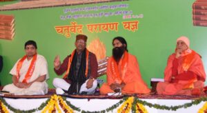 इसके उपरांत मा0 मुख्यमंत्री सपरिवार पतंजलि फेस 1 पहुंचे, जहां चतुर्वेद महा परायण यज्ञ का आरंभ मकर संक्रांति के उपलक्ष्य में किया गया। यह यज्ञ लगभग एक महीने तक चलेगा इस यज्ञ में स्वामी राम देव जी के साथ मुख्यमंत्री जी ने भी सहभागिता की ओर यज्ञ में आहूति दी और देश के लिए मंगलकामना की। उन्होंने कहा कि आज हमारा देश हर क्षेत्र में आगे बढ़ रहा है। देश की चार कम्पनियां कोरोना वेक्सीन बना रही हैं। दुनिया के 12 देश हमसे कोरोना की वेक्सीन मांग रहे हैं। उन्होंने सभी से दैनिक जीवन में प्राणायाम, योग को अपनाने का आह्वान किया। उन्होंने कहा कि योग हमारे ऋषि मुनियों की देन है। इस अवसर पर मुख्यमंत्री ने ‘‘वेदों की शिक्षाएं’’ नामक पुस्तक का विमोचन भी किया।