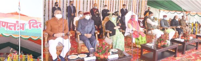 देहरादून। उत्तराखण्ड में आज 72वां गणतंत्र दिवस धूमधाम से मनाया गया। यहां गणतंत्र दिवस परेड और मुख्य समारोह दून स्थित परेड ग्राउंड में आयोजित किया गया। परेड ग्राउण्ड में सुबह साढ़े दस बजे राज्यपाल बेबी रानी मौर्य ध्वजारोहण किया और परेड की सलामी ली। राज्यपाल मौर्य ने उत्कृष्ट प्रदर्शन करने वाले कर्तव्यपरायण पुलिस कर्मियों को भी सम्मानित किया।