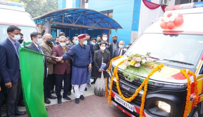 देहरादून। मुख्यमंत्री त्रिवेन्द्र सिंह रावत ने गांधी शताब्दी नेत्र चिकित्सालय देहरादून में आयोजित कार्यक्रम में आपातकालीन चिकित्सा सेवा 108 के बेड़े में 132 नई एम्बुलेंस का फ्लैग ऑफ किया। इन आपातकालीन एम्बुलेंसस का क्रय विश्व बैंक सहायतित उत्तराखंड डिजास्टर रिकवरी परियोजना के माध्यम से किया गया है। उन्होंने गांधी शताब्दी अस्पताल में 10 बेड की आईसीयू यूनिट का भी लोकार्पण किया।