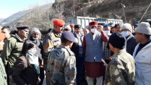 जोशीमठ के रैणी क्षेत्र में आपदा ग्रस्त क्षेत्र का मुख्यमंत्री ने किया स्थलीय निरीक्षण।