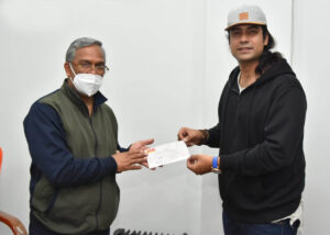 गायक जुबिन नौटियाल ने सौंपा मुख्यमंत्री को 13.91 लाख का चेक