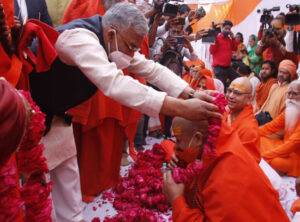 हरिद्वार। मुख्यमंत्री त्रिवेंद्र सिंह रावत ने निरंजनी अखाड़े की पेशवाई में पहुंचकर साधु-संतों की परंपराओं को समझा। अखाड़ा परिषद के अध्यक्ष महंत नरेंद्र गिरि, निरंजनी अखाड़े के सचिव महंत रवींद्र पुरी महाराज ने मुख्यमंत्री को छावनी का भ्रमण करवाया। मुख्यमंत्री त्रिवेंद्र सिंह रावत ने कहा कि उन्हें बेहद खुशी हो रही है कि आज पहली पेशवाई भव्य रूप में निकल रही है। उन्होंने कहा कि साधु-संतों ने भारतीय संस्कृति के लिए हमेशा से बढ़-चढ़कर हिस्सा लिया है। उन्होंने लोगों से भी आह्वान किया कि लोग कुंभ मेले के दौरान साधु संतों का आशीर्वाद लेने के लिए पहुंचें।