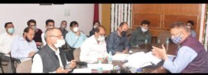 मसूरी विधानसभा क्षेत्र की पेयजल योजनाओं की समीक्षा करते मंत्री गणेश जोशी।