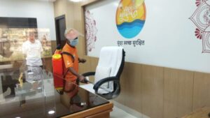 हरिद्वार। मेलाधिकारी दीपक रावत के निर्देशों के क्रम में शुक्रवार को डॉ0 अर्जुन सिंह सेंगर मेलाधिकारी (स्वास्थ्य) के निर्देशन में मेला नियंत्रण भवन (सीसीआर) स्थित सभी कार्यालयों को सेनेटाइज किया गया।