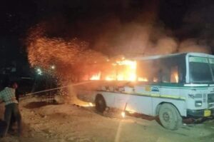 देर रात तीन बसों में लगी आग,संदिग्ध पकड़ा