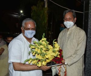 मुख्यमंत्री श्री तीरथ सिंह रावत ने जीएमएस रोड, भागीरथी पुरम स्थित निजी आवास पर राष्ट्रीय महामंत्री संगठन श्री बी.एल. संतोष जी का स्वागत किया