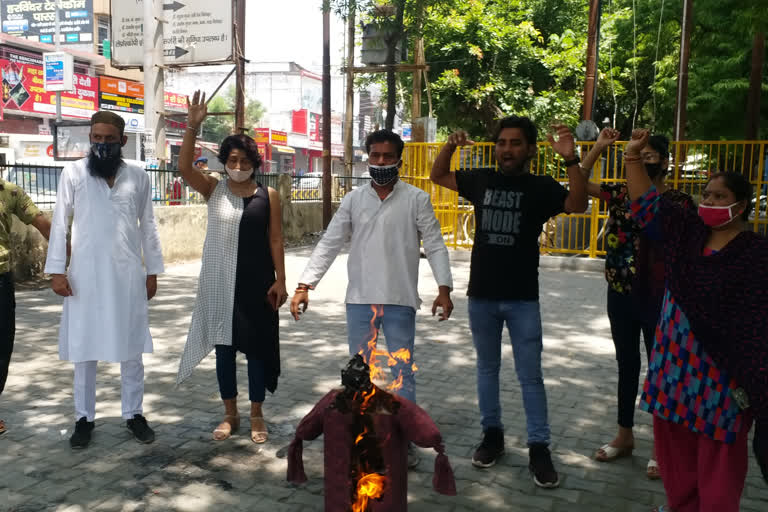 मंहगाई के खिलाफ कांग्रेस ने फूंका सरकार का पुतला