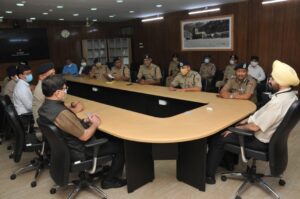 मुख्य सचिव श्री एस.एस. संधू से मंगलवार को सचिवालय में पुलिस विभाग के समस्त उच्चाधिकारियों ने शिष्टाचार भेंट की