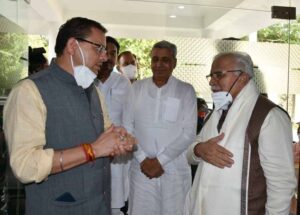 मुख्यमंत्री श्री पुष्कर सिंह धामी ने गुरुवार को सहस्त्रधारा हेलीपैड पर हरियाणा के मुख्यमंत्री श्री मनोहर लाल खट्टर से भेंट की ।