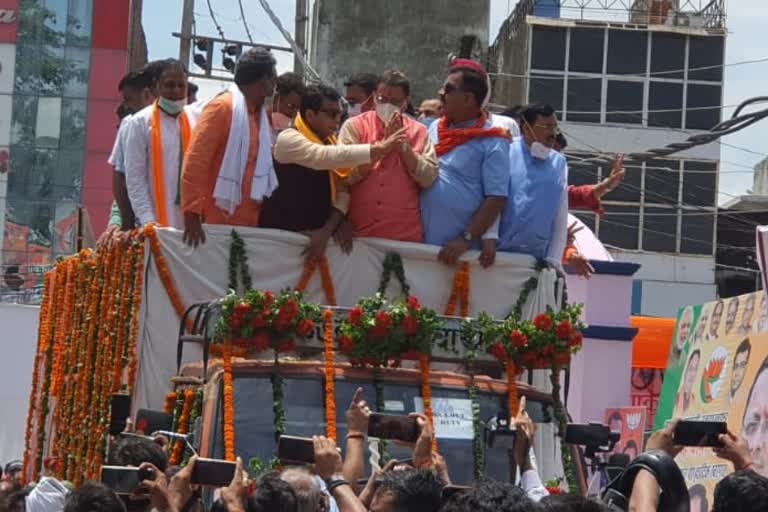 रुद्रपुर। मुख्यमंत्री बनने के बाद पहली बार सीएम पुष्कर सिंह धामी दो दिवसीय दौरे पर अपने गृह जनपद में है। ऐसे में आज जैसे ही उनका काफिला रुद्रपुर पहुंचा तो कार्यकर्ताओं ने ढोल-नगाड़ों व फूलमालाओं से उनका स्वागत किया गया। इस दौरान उन्होंने रॉड शो के माध्यम से जनता का अभिनंदन भी किया। युवा मुख्यमंत्री बनने पर बीजेपी के युवा कार्यकर्ताओं में खूब उत्साह देखा गया. इस दौरान कार्यकर्ता ढोल-नगाड़ों की थाप पर झूमते हुए नजर आए।