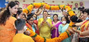 खटीमा में आयोजित रक्षाबंधन मिलन समारोह में महिलाओं ने मुख्यमंत्री को राखी बांधी