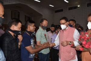 मुख्यमंत्री श्री पुष्कर सिंह धामी ने मंगलवार को सायं मुख्यमंत्री आवास स्थित कैम्प कार्यालय के जनता मिलन हॉल में अफगानिस्तान से सकुशल लौटे 56 उत्तराखण्ड वासियों का स्वागत किया।