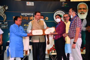 देहरादून।मुख्यमंत्री श्री पुष्कर सिंह धामी ने गुरुवार को आई.एस.बी.टी देहरादून स्थित एक होटल में आयुष्मान भारत योजना के 3 वर्ष पूर्ण होने पर स्वास्थ विभाग द्वारा आयोजित आरोग्य मंथन 3.0 कार्यक्रम बतौर मुख्य अतिथि प्रतिभाग किया। इस अवसर पर मुख्यमंत्री ने आयुष्मान योजना के तहत अच्छा कार्य कर रहे 12 अस्पतालों को सम्मानित भी किया। मुख्यमंत्री श्री पुष्कर सिंह धामी ने इस अवसर पर घोषणा की कि आयुष्मान कार्ड बनाने का कोई शुल्क नहीं लिया जायेगा। सरकार द्वारा इस शुल्क का भुगतान किया जायेगा। आयुष्मान योजना के तहत सभी अस्पतालों का भुगतान एक सप्ताह के अंदर किया जायेगा।