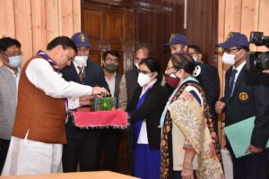 देहरादून।मुख्यमंत्री श्री पुष्कर सिंह धामी से रविवार को मुख्यमंत्री आवास में भारत स्काउट एवं गाइड के स्थापना दिवस के अवसर पर भारत स्काउट गाइड की स्टेट चीफ कमीश्नर सुश्री सीमा जौनसारी के नेतृत्व में भारत स्काउट एवं गाइड के प्रतिनिधिमण्डल ने शिष्टाचार भेंट की। उन्होंने मुख्यमंत्री को स्टीकर (ध्वज) लगाया।