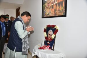 मुख्यमंत्री पुष्कर सिंह धामी ने पूर्व प्रधानमंत्री भारत रत्न, स्वर्गीय श्री अटल बिहारी वाजपेयी की जयन्ती के अवसर पर मुख्यमंत्री आवास में उनके चित्र पर श्रद्धा सुमन अर्पित कर श्रद्धांजलि दी