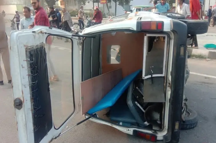 एंबुलेंस से टकराइ कार , मरीज की मौके पर मौत, चार घायल