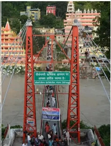 लक्ष्मण झूला पुल की सपोर्टिंग वायर टूटी, आवाजाही ठप