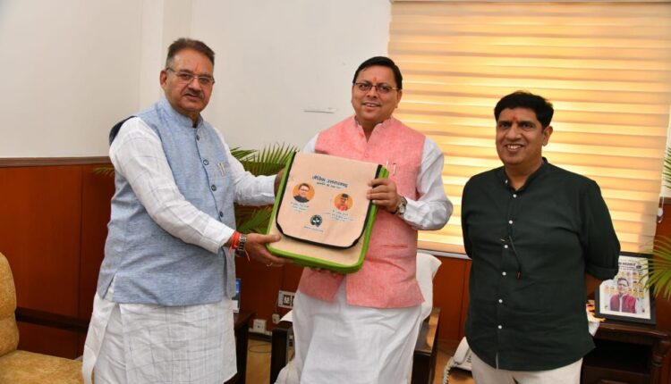 जैविक उत्पादों की किट का अनावरण करते मुख्यमंत्री पुष्कर सिंह धामी और कृषि मंत्री गणेश जोशी
