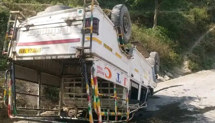 ब्रेक फेल होने से रोड पर पलटा यूटिलिटी वाहन, पांच घायल