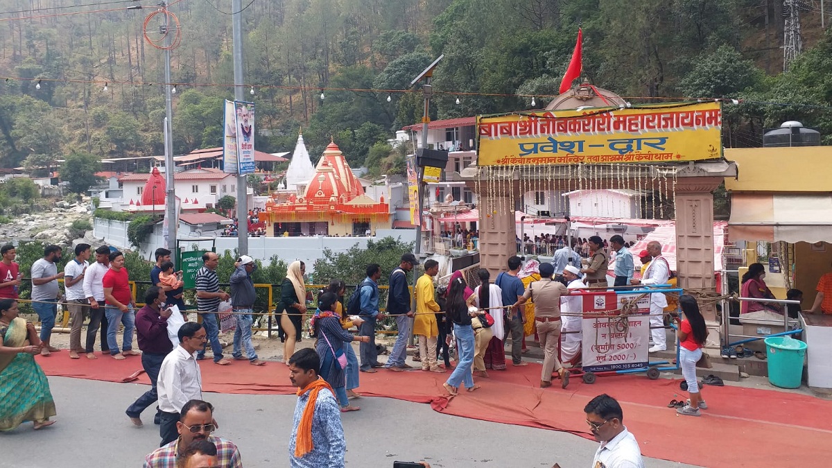 हल्द्वानी। कैंची धाम स्थापना दिवस पर बाबा नीब करोरी महराज के दर्शन के लिए श्रद्धालुओं का रेला उमड़ पड़ा है। कई किमी पहले से ही लाइन में कतारबद्ध होकर बाबा के दर्शन और प्रसाद के लिए भक्त पहुंच रहे हैं। श्रद्धालुओं में स्वतरू अनुशासन और संयम नजर आ रहा है।उत्तराखण्ड को देवभूमि यूं ही नहीं कहा जाता है। यहां आकर देश ही नहीं विदेश के लोगों को भी जीने का रास्ता मिला। किस्मत बदलने वाले बाबा नीब करोरी की तो बात ही निराली है। यही कारण है कि बाबा नीब करौली के दर पर मत्था टेकने के लिए देश विदेश के लोग कैंची धाम पहुंचते हैं।बुधवार को अल्मोड़ा हल्द्वानी हाईवे पर स्थित सुप्रसिद्ध कैंची धाम मंदिर में आस्था का सैलाब उमड़ा। सुबह चार बजे से ही बाबा के जयकारों के साथ बाबा के भक्तों ने कतारबद्ध होकर मंदिर परिसर में प्रवेश किया। मालपुए का प्रसाद लेकर बाबा के जयकारों के साथ पूरा क्षेत्र गुंजायमान हो उठा।पुलिस प्रशासन भी सुबह से ही मुस्तैद दिखा। वहीं मंदिर समिति के कार सेवक जगह-जगह पर व्यवस्था बनाने में जुटे रहे। बाबा के दर पर मत्था टेकने वालों की मंदिर के दोनों ओर करीब दो किलोमीटर लंबी कतार लगी रही। एक-एक कर सभी श्रद्धालुओं ने जयकारों के साथ मंदिर परिसर में प्रवेश किया। मंदिर के प्रवेश द्वार के ठीक सामने कंट्रोल रूम से सभी गतिविधियों पर निगरानी रखी गई।