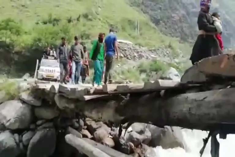 लकड़ी पुल के सहारे कई गावों के ग्रामीण एक दशक बाद भी नहीं बना निर्माणाधीन जखोल-लिवाड़ी मोटरमार्ग,