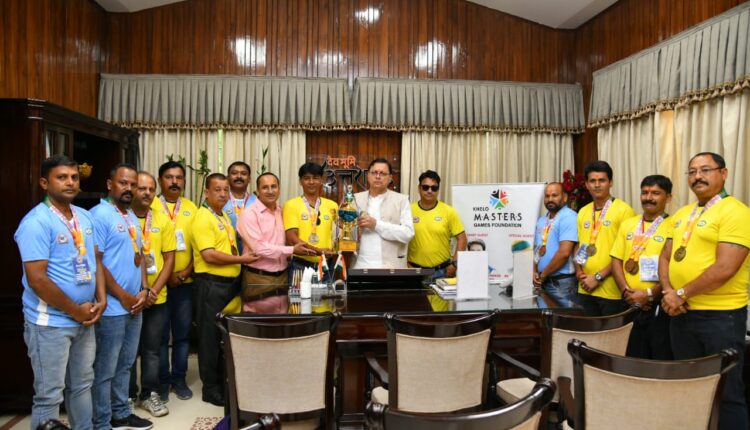 मुख्यमंत्री पुष्कर सिंह धामी ने सोमवार को मुख्यमंत्री कैम्प कार्यालय में नेशनल खेलो मास्टर्स गेम्स की स्वर्ण और काँस्य पदक विजेता फुटबाल खिलाड़ियों को सम्मानित किया।