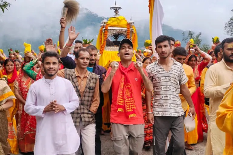 भक्त पारंपरिक वाद्य यंत्रों की घुन पर झूमते हुए नजर आए। यात्रा के पड़ावों पर पर्यटकों व राहगीरों ने भी भगवान नाग देवता की डोली के दर्शन किए। कलश यात्रा के नाग मंदिर पहुंचने पर महिलाओं ने कलश को श्रीमद भागवत कथा मंडप में स्थापित किए। श्रद्धालुओं ने नाग देवता के दर्शन किए और शिवलिंग पर जलाभिषेक किया। नाग देवता की प्रतिमा पर दुग्धाभिषेक कर परिवार की। खुशहाली की कामना की.स्थानीय निवासी राकेश रावत ने बताया कि कलश यात्रा के दौरान महिलाएं अपने सिर पर रखे कलश को हटाती नहीं हैं। अगर कलश हट जाये तो यात्रा पूरी नहीं मानी जाती