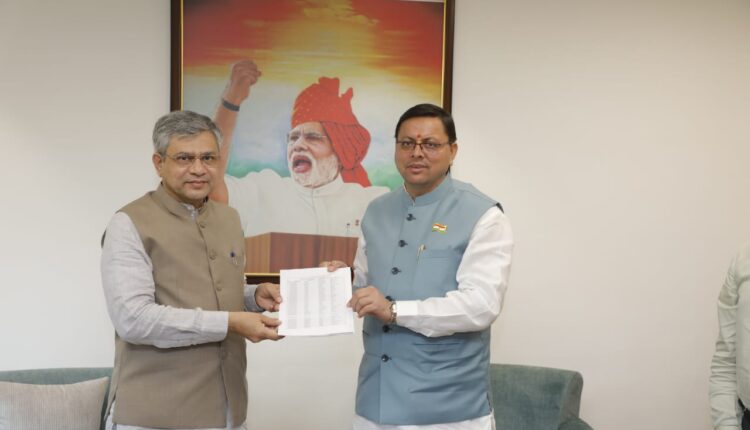 मुख्यमंत्री पुष्कर सिंह धामी ने शनिवार को नई दिल्ली में केंद्रीय मंत्री, रेल, संचार, इलेक्ट्रॉनिक्स व सूचना तकनीक अश्विनी वैष्णव से शिष्टाचार भेंट की।