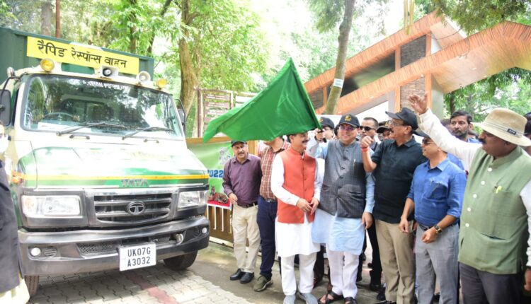 देहरादून। मुख्यमंत्री पुष्कर सिंह धामी ने शनिवार को लच्छीवाला नेचर पार्क में राज्य वन्यजीव सप्ताह 2022 का शुभारंभ किया। इस अवसर पर राजाजी नेशनल पार्क की ऑफिशियल वेबसाइट लॉच की एवं राजाजी नेशनल पार्क के लिए 02 रैपिड रिस्पांस वाहन का लोकार्पण भी किया। वन्यजीवों से हुई मवेशी एवं फसल क्षति के लिए 16 लोगों को मुआवजा चेक भी मुख्यमंत्री ने प्रदान किये।