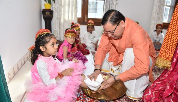 मुख्यमंत्री पुष्कर सिंह धामी ने नवरात्र की नवमी के नौ दुर्गा की प्रतीक नौ कन्याओं को भोजन कराया।