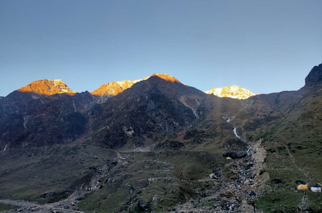 खिलती धूप में बर्फ से ढकी ऊंची-ऊंची चोटियां सोने सी चमकते दिख रही थी। यह दृश्य देख श्रद्धालु रोमांचित हो उठे और इस दृश्य को अपने मोबाइल में कैद करने लगे।