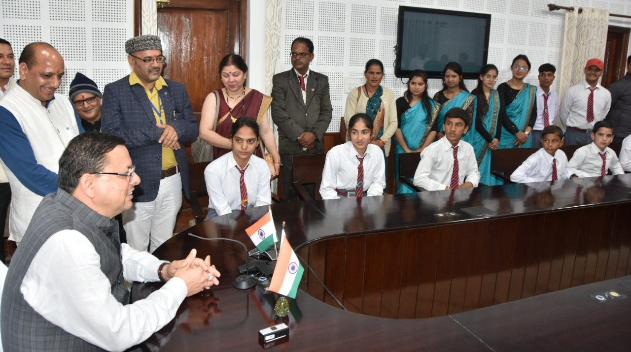 देहरादून। मुख्यमंत्री पुष्कर सिंह धामी से शनिवार को मुख्यमंत्री आवास स्थित केम्प कार्यालय में देहरादून भ्रमण पर आये बाल शिक्षा सदन स्कूल बड़कोट के छात्रों ने भेंट की। मुख्यमंत्री से मिलने आये छात्र मुख्यमंत्री से मिलकर उत्साहित नजर आये।