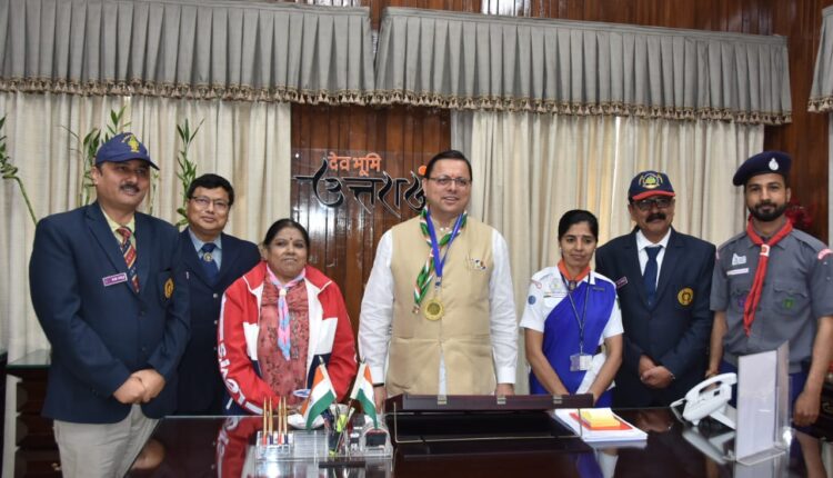 मुख्यमंत्री पुष्कर सिंह धामी से सोमवार को मुख्यमंत्री कैम्प कार्यालय में भारत स्काउट एवं गाइड की स्थापना दिवस के अवसर पर भारत स्काउट एवं गाइड के प्रतिनिधि दल ने भेंट