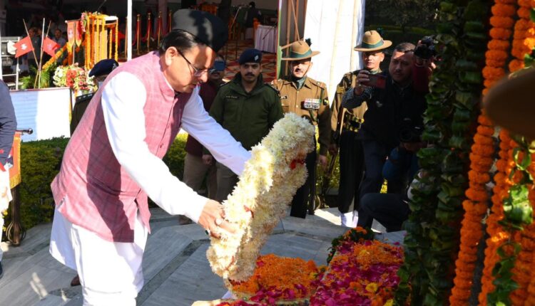 पुष्कर सिंह धामी ने शुक्रवार को गांधी पार्क, देहरादून में विजय दिवस के अवसर पर शहीद स्मारक पर पुष्प चक्र अर्पित कर शहीदों को श्रद्धांजलि दी