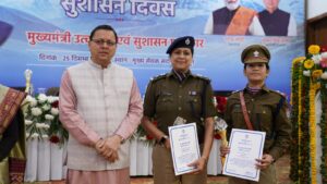 देहरादून। मुख्यमंत्री पुष्कर सिंह धामी ने सुशासन दिवस के अवसर पर मुख्यमंत्री आवास स्थित मुख्य सेवक सदन में सराहनीय कार्य करने वाले अधिकारियों एवं कर्मचारियों को मुख्यमंत्री उत्कृष्टता एवं सुशासन पुरस्कार से सम्मानित किया। उन्होंने पुरस्कार प्राप्त करने वाले सभी अधिकारियों एवं कर्मचारियों को शुभकामनाएं दी। मुख्यमंत्री ने आशा व्यक्त की कि सभी अधिकारी एवं कर्मचारी आगे भी इसी मनोयोग से कार्य करते रहेंगे।