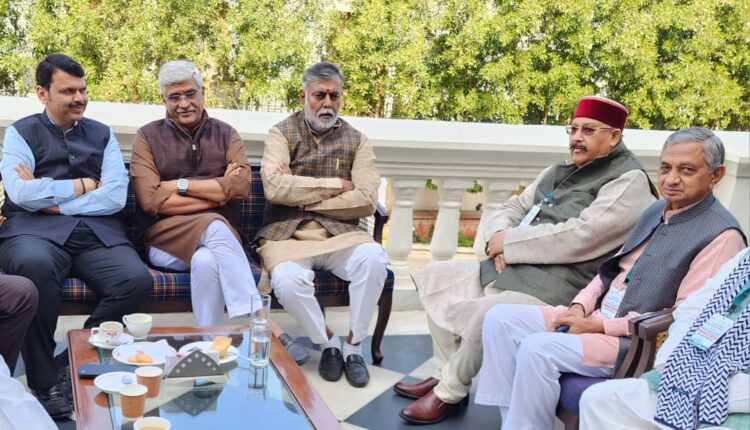 देहरादून/भोपाल। मध्य प्रदेश स्थित भोपाल के कुशाभाऊ ठाकरे हॉल (मिंटो हॉल), जहांगीराबाद में जल शक्ति मंत्रालय भारत सरकार द्वारा आज दूसरे दिन शुक्रवार को पहले अखिल भारतीय वार्षिक राज्य मंत्रियों के सम्मेलन “जल दृष्टि@ 2047” के आयोजन के बीच हुए टी ब्रेक के मौके पर हुई चर्चा के दौरान प्रदेश के पर्यटन, लोक निर्माण, सिंचाई, पंचायती राज, ग्रामीण निर्माण, जलागम, धर्मस्व एवं संस्कृति मंत्री सतपाल महाराज ने महाराष्ट्र के उप मुख्यमंत्री देवेंद्र फडणवीस से उत्तराखंड के पूर्व मुख्यमंत्री और महाराष्ट्र के राज्यपाल भगत सिंह कोश्यारी का हालचाल जाना।